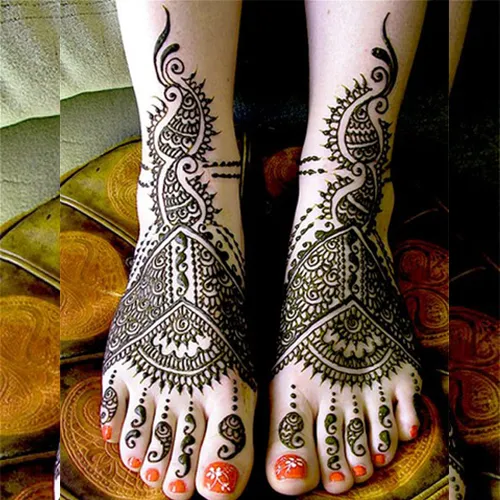 The Artistry of Feet Mehndi" In the realm of Mehndi artistry, there exists a canvas often overlooked yet brimming with cultural richness and aesthetic allure—the feet. Feet Mehndi, a tradition deeply rooted in various cultures around the world, holds a special place in the tapestry of Mehndi adornment. From intricate bridal designs to casual everyday patterns, Mehndi on the feet adds a touch of elegance, tradition, and beauty to any occasion.
